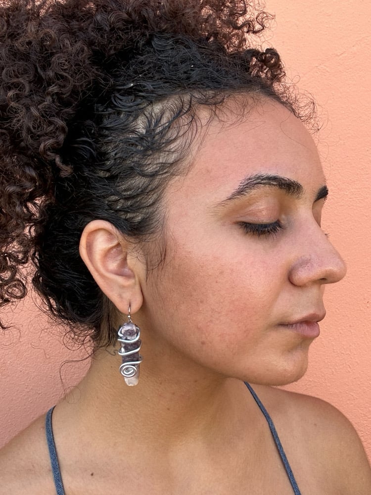 ★One-Of-A-Kind Handcrafted Adorned Silver Aluminum Wire Earrings